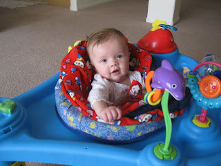 I'll start with Liv. I can't believe she's already 4+ months old! She is doing great! I feel so blessed that she is so healthy and developing perfectly so far. In the last week she has started rolling over (multiple times so she ends up far away from where I put her) and grabbing things. She has also decided she doesn't like nursing from mommy. :( We'll see how long I can stand pumping... Usually she is a happy little person, but in the last two weeks she has screamed for an hour+ straight while being babysat (sorry Ang and Anne-Marie!). What a stinker! I told Adam she could write a book called, "How to Lose Friends and Frustrate People." At least she's good for me. Here are some recent pictures. She gets lots of attention from her adoring older sisters.